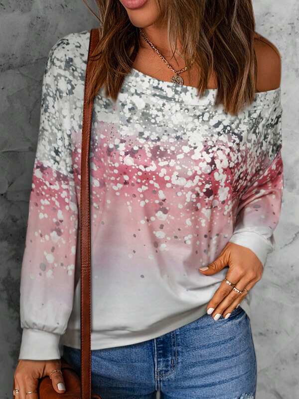 Women'S Gradient Print Asymmetric Collar Sweatshirt