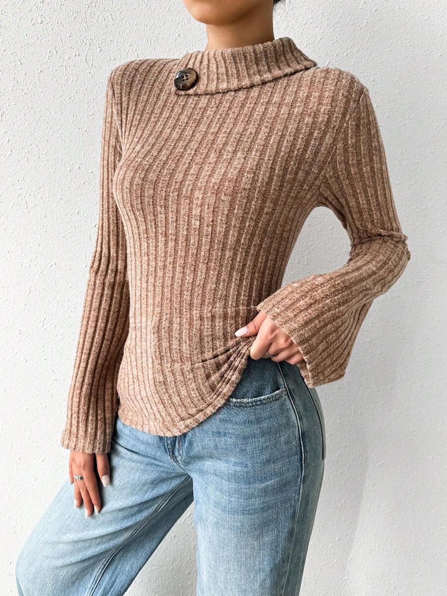 SHEIN Essnce Women's High Collar Button Detail T-Shirt