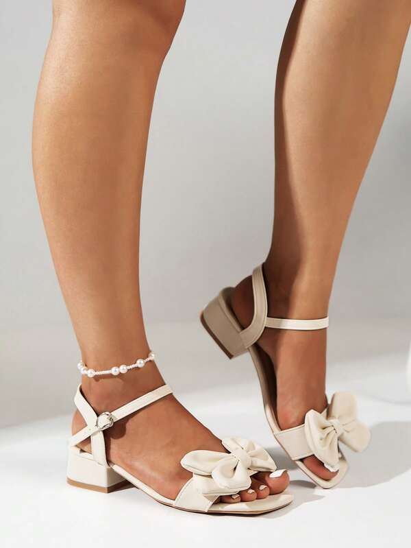 Women'S High Heel Sandals With Simple Bowknot & Peep Toe, Ankle Strap, White