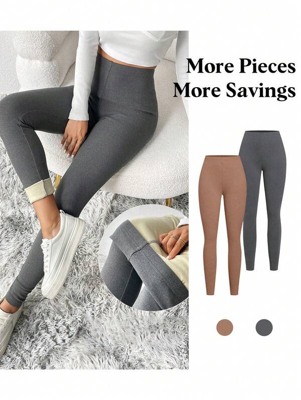 SHEIN Essnce Women'S High-Waist Fleece Lined Leggings