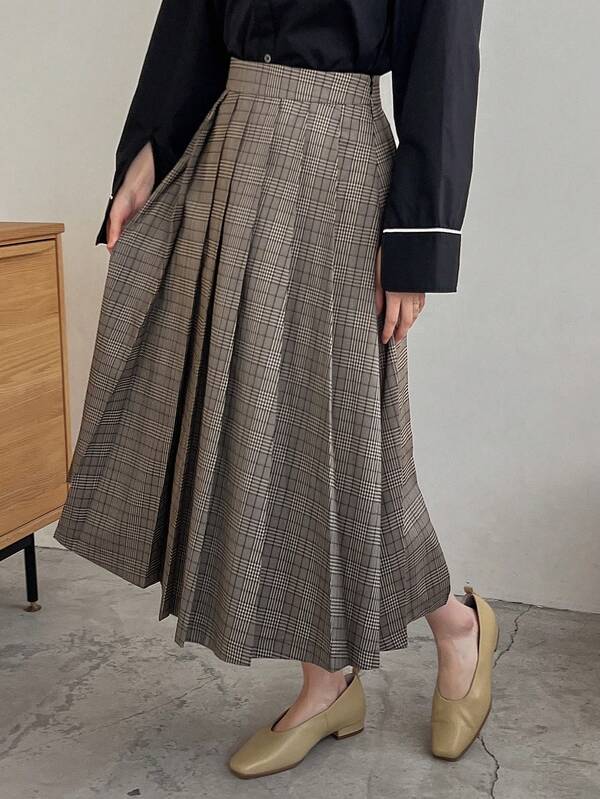 FRIFUL Women'S High Waist Plaid Skirt