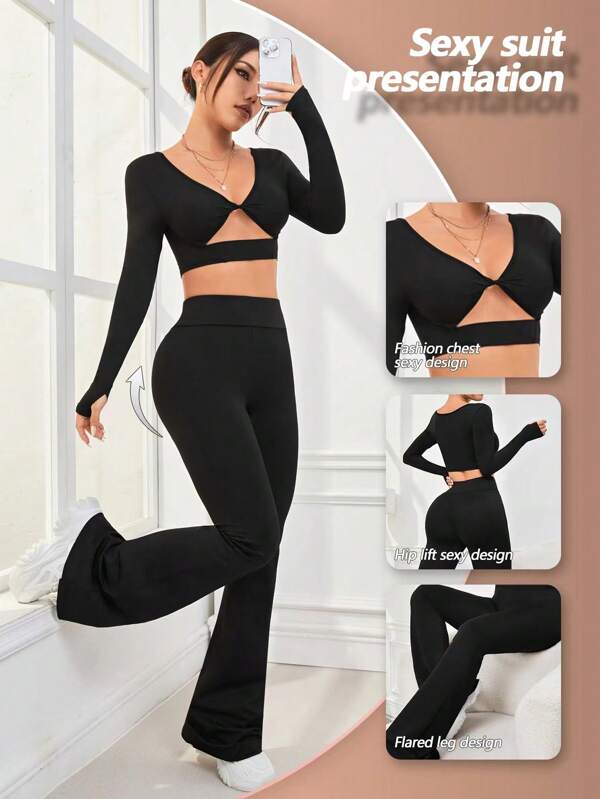 SHEIN Daily&Casual Women'S Hollow Out Long Sleeve Long Pants Sports Outfit