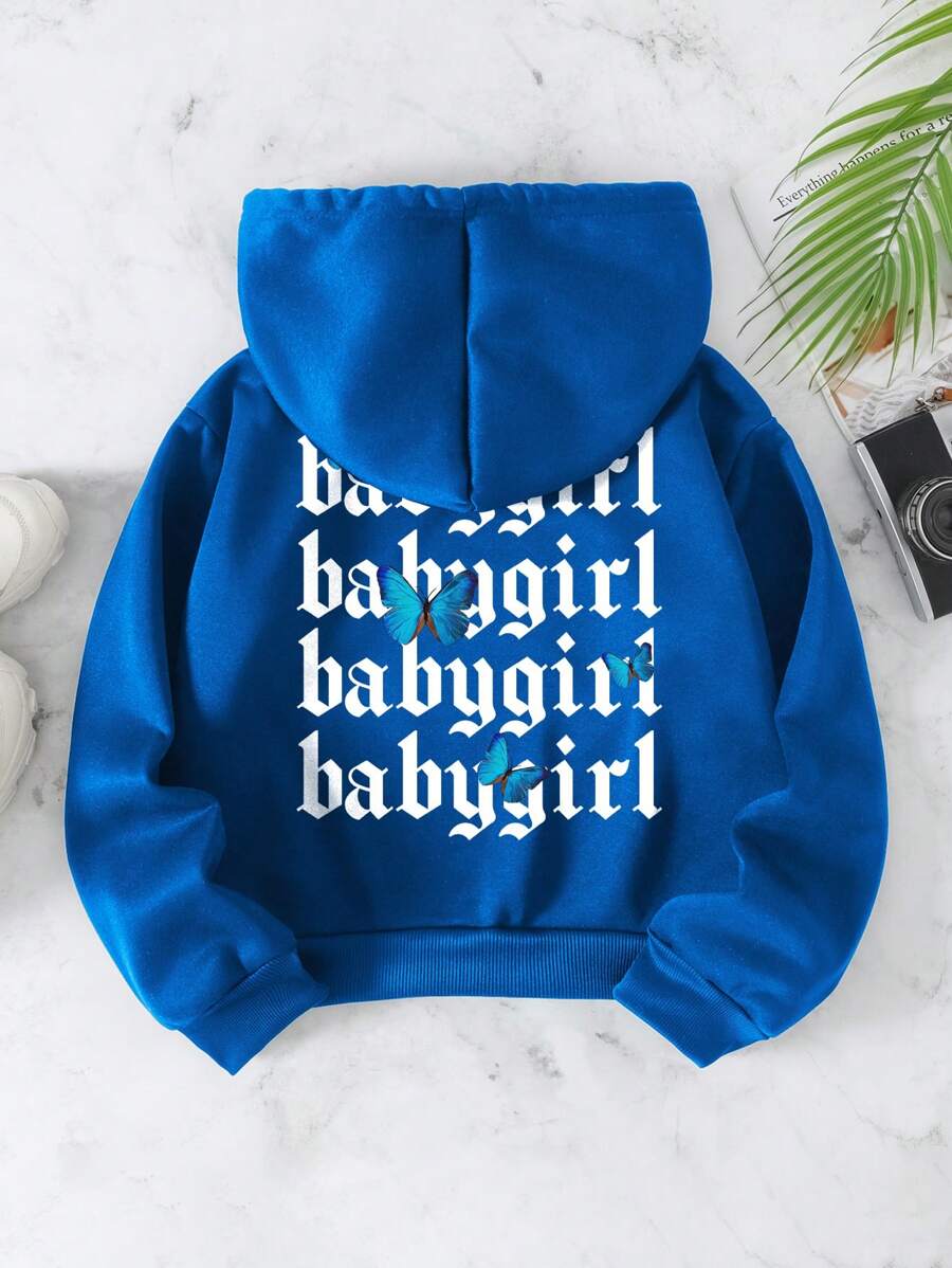 Women'S Hooded Fleece Sweatshirt With Letter & Butterfly Print