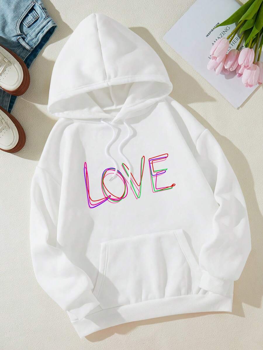 Women'S Hooded Letter Printed Drawstring Fleece Sweatshirt