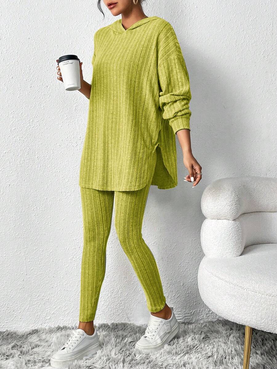 SHEIN Essnce Women's Hooded Loose Shoulder Long Sleeve Top And Leggings Set
