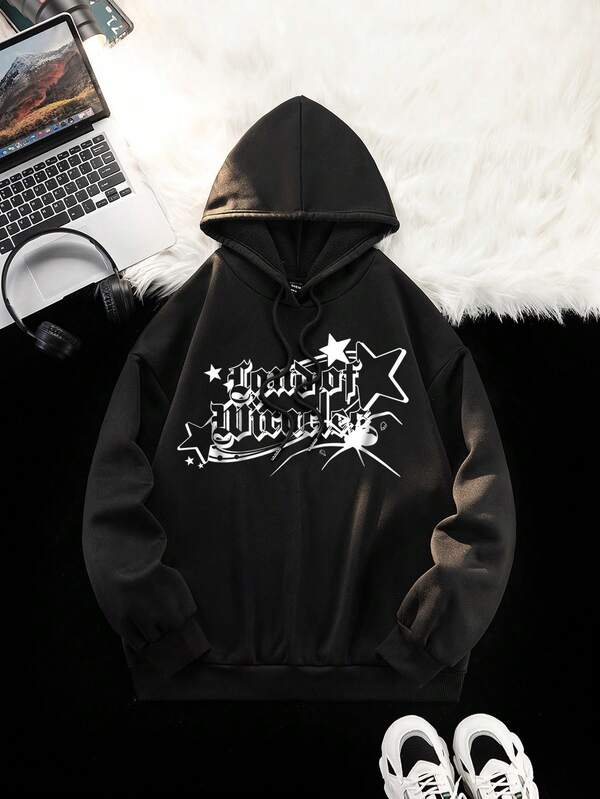 SHEIN Coolane Women'S Hooded Sweatshirt With Letter & Stars Printing