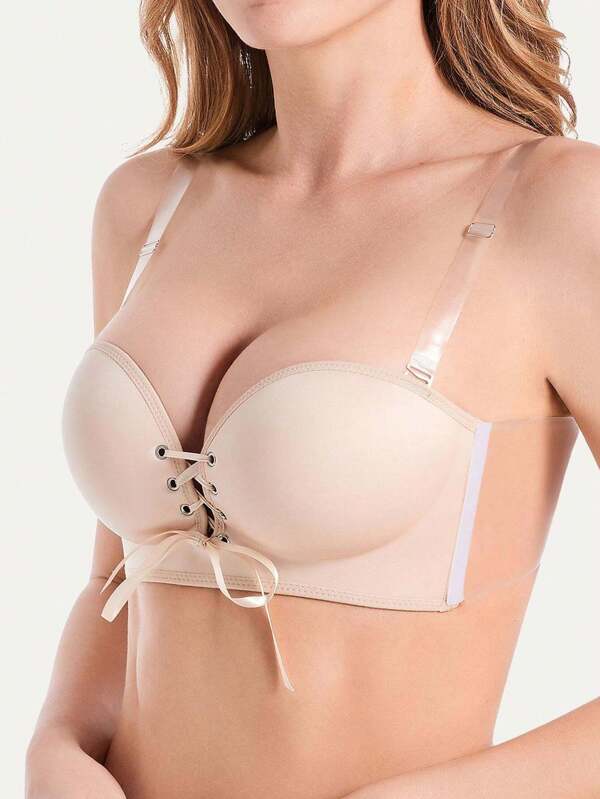 Women'S Invisible Wing Adhesive Push Up Bra With No Steel Ring And Shoulder & Back Strap Design, Suitable For Small Cup Sizes