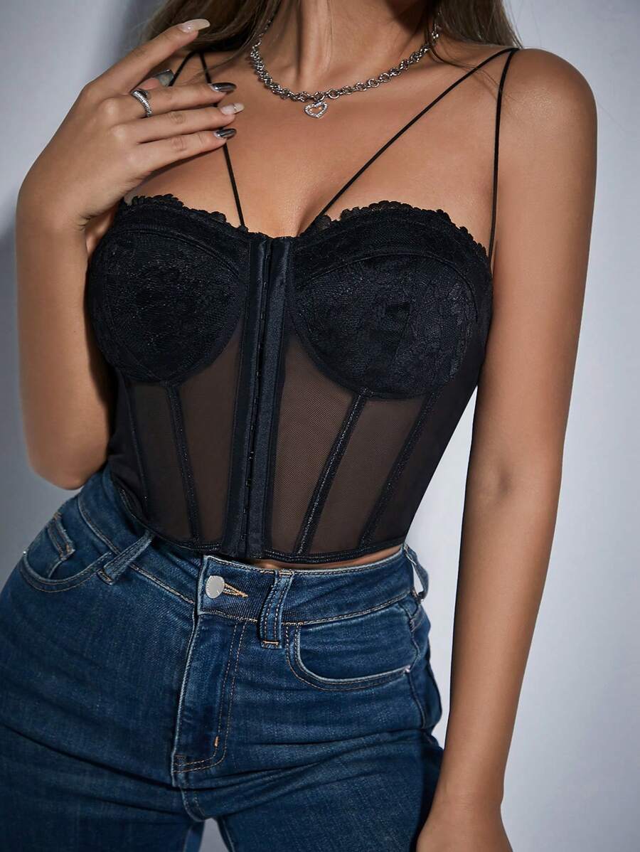SHEIN SXY Women'S Lace Bralette With Padded Cups, Double Straps And Back Closure
