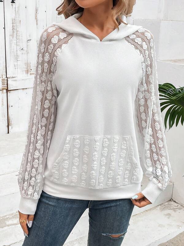 SHEIN LUNE Women'S Lace Raglan Sleeve Hooded Sweatshirt
