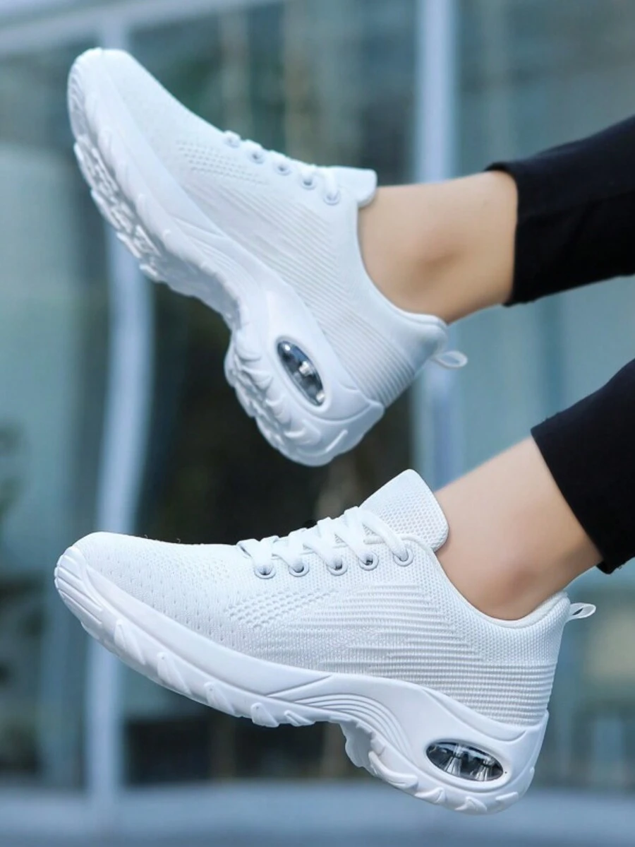 Women's Lace-Up Flying Woven Fashion Running Shoes, Air Cushion Athletic Sneakers, Shock Absorption Mesh Sneakers