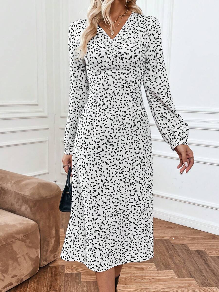 SHEIN LUNE Women'S Lantern Sleeve Dress With All Over Heart Print