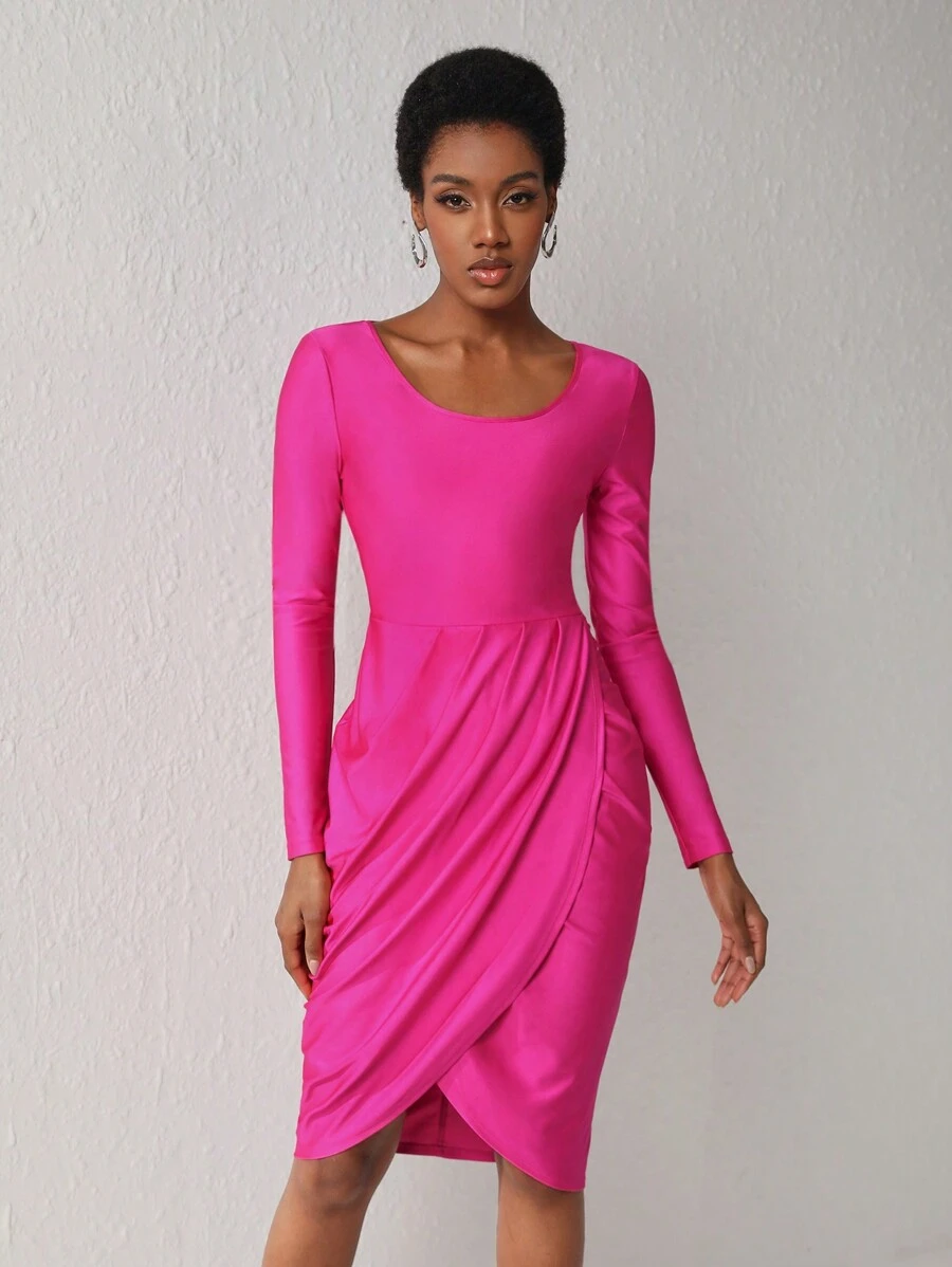 Elonson Collection Women'S Large Round Collar Wrap Style Pleated Dress