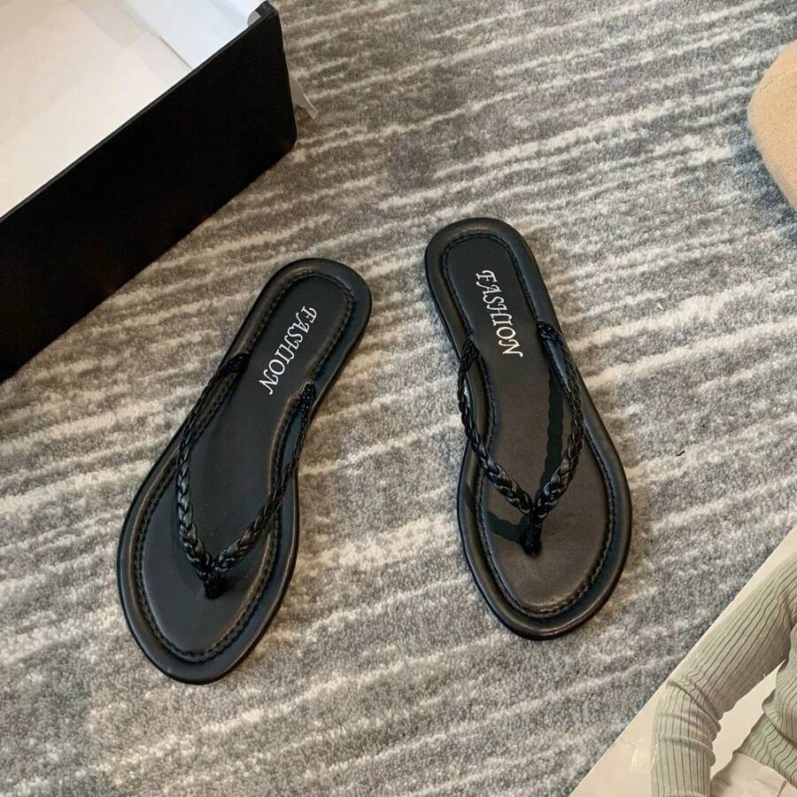 Women's Leisure Woven Pattern Low-Heeled Open Toe Slip-On Sandals