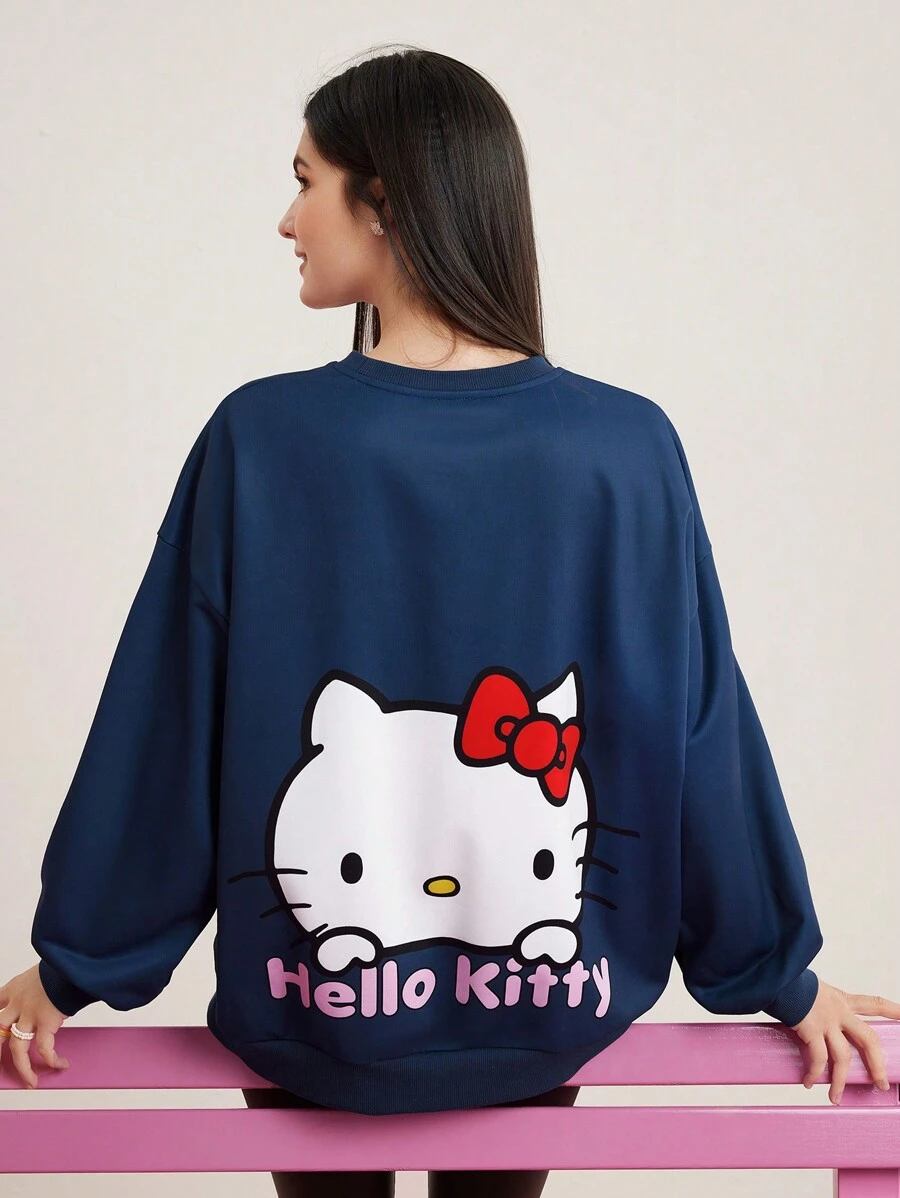 HELLO KITTY AND FRIENDS | SHEIN Letter & Cartoon Print Drop Shoulder Long Sleeve Sweatshirt