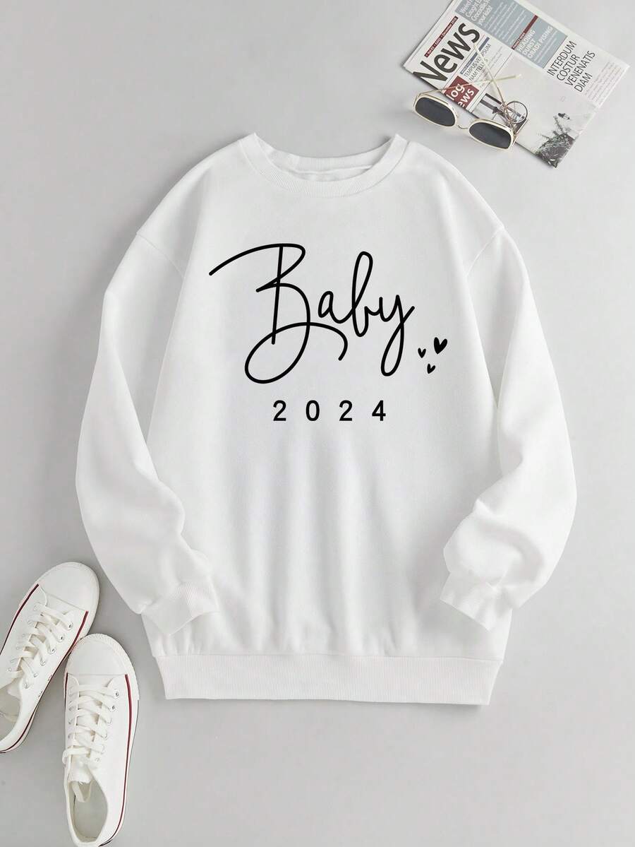 SHEIN LUNE Women'S Letter Printed Round Neck Sweatshirt