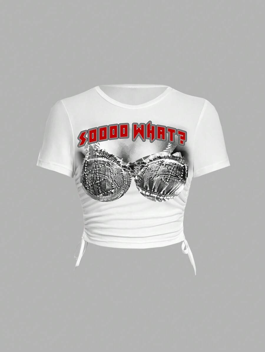 SHEIN EZwear Women's Letter Printed Side Drawstring T-Shirt With 3d Effect