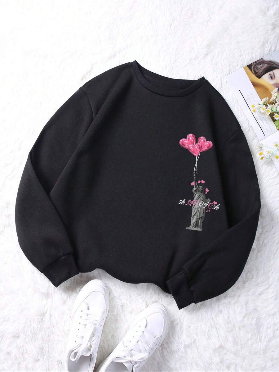 Women'S Lettering Love Balloon Print Drop Shoulder Sweatshirt