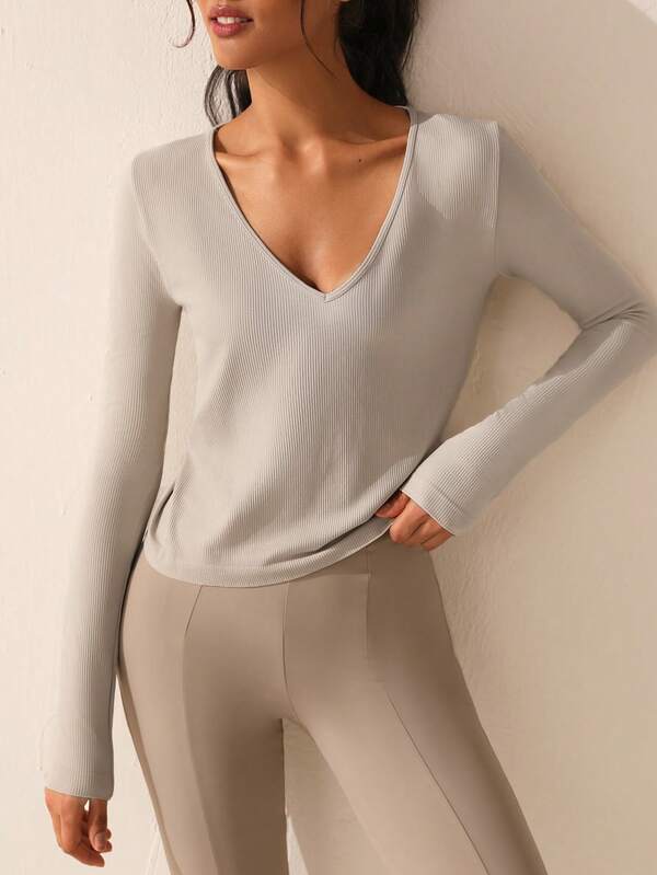 SHEIN Leisure Women'S Long Sleeve Ribbed Sports T-Shirt