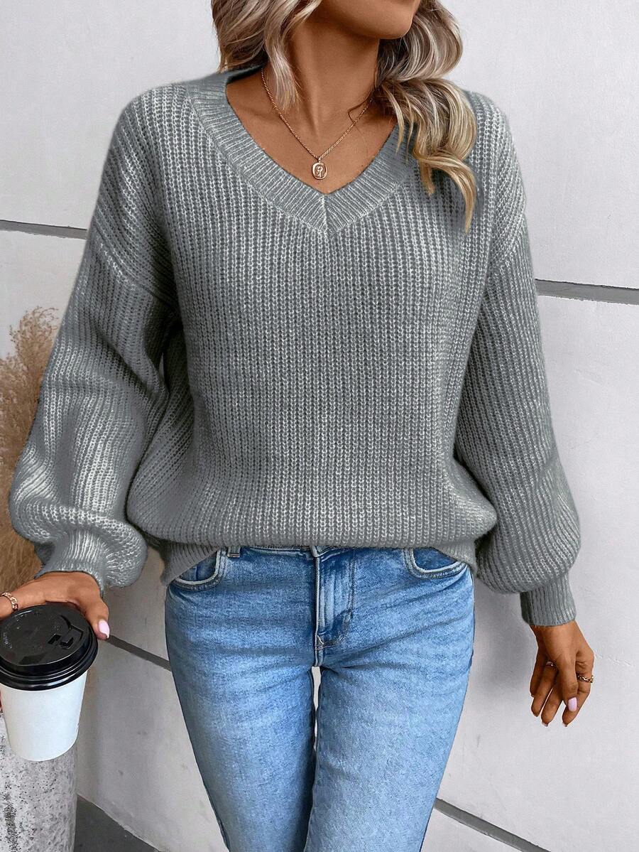 SHEIN LUNE Women's Loose Fit V-Neck Drop Shoulder Knit Sweater