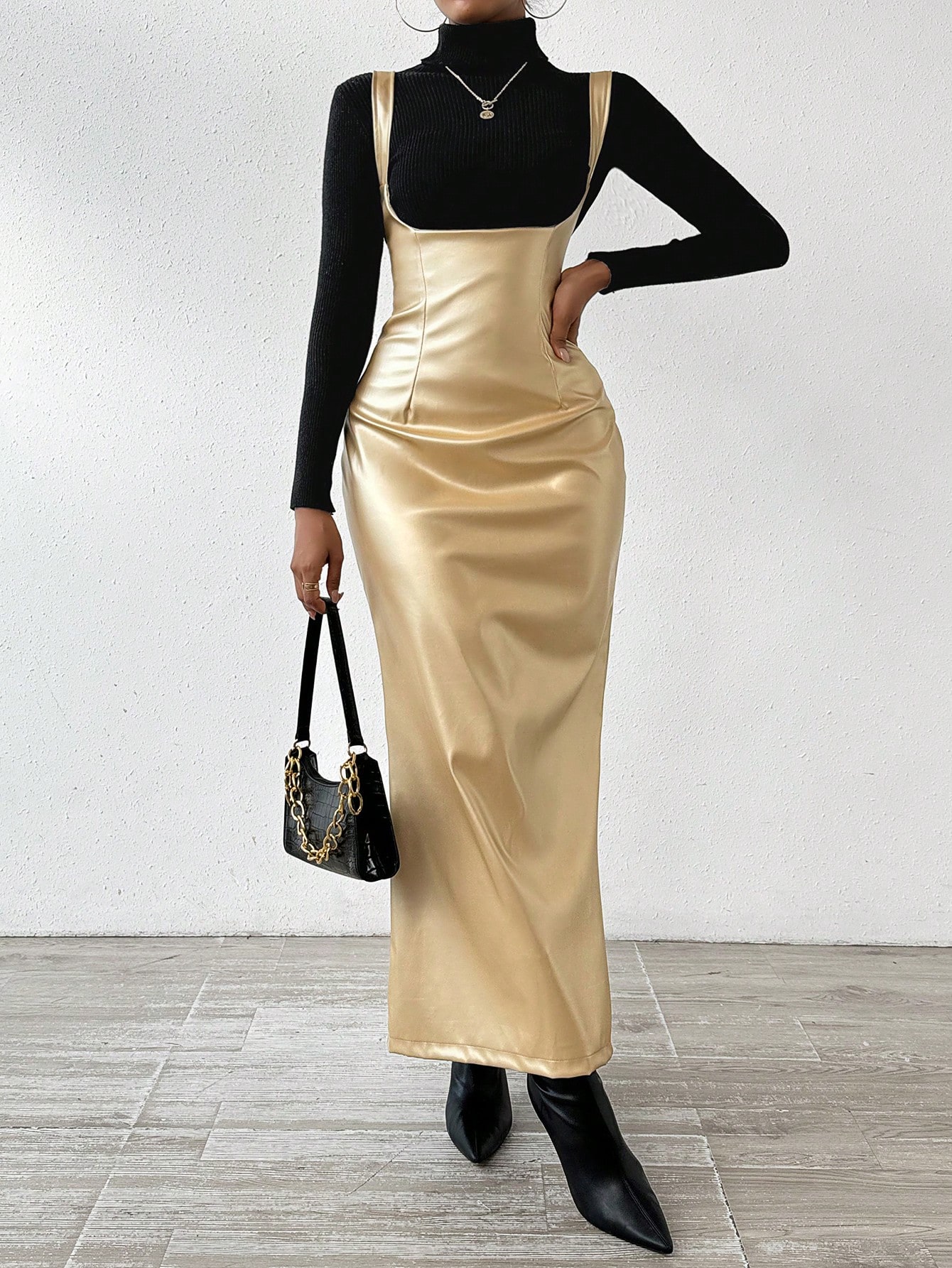 SHEIN Privé Women'S Metallic Suspender Dress
