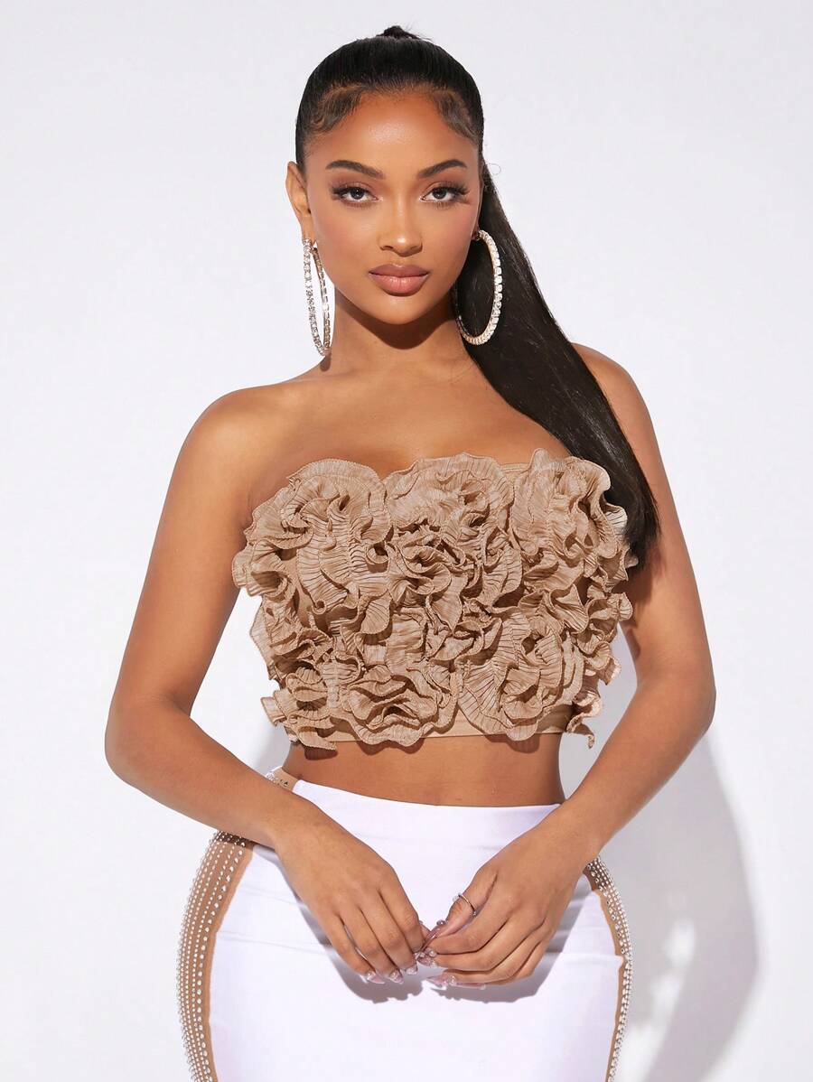SHEIN SXY Women's Multi-Layered Ruffle Trim Decor Strapless Top