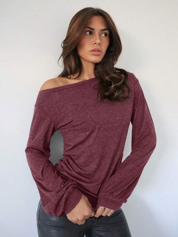 SHEIN Essnce Women'S Off-Shoulder Long-Sleeved T-Shirt