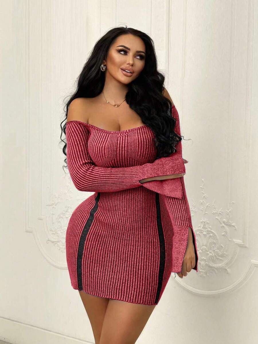 SHEIN SXY Women's One Shoulder Split Sleeve Slim Fit Sweater Dress