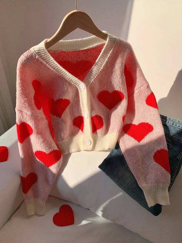 SHEIN EZwear Women'S Open Front Cardigan With Heart Shape Pattern