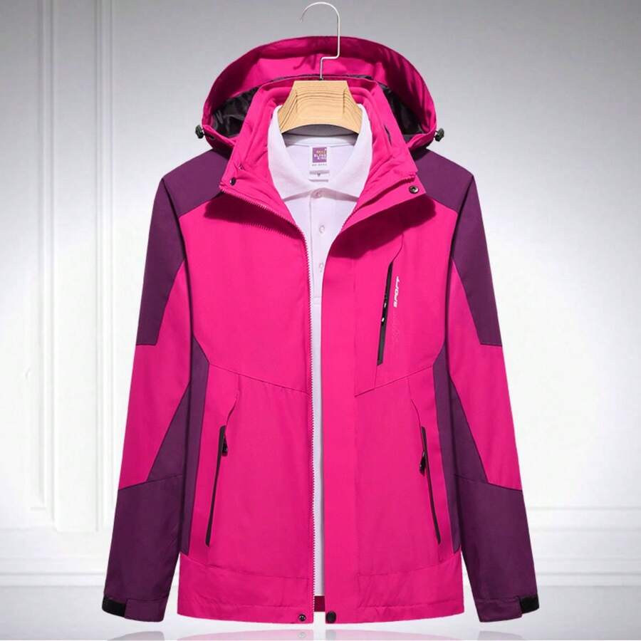 Women'S Outdoor Casual Three-In-One Windproof, Waterproof, And Dirty Resistant Breathable Detachable Hood Jacket, Featuring Personality Letter Detail And Printed Label, Scratch-Resistant, Cuffs
