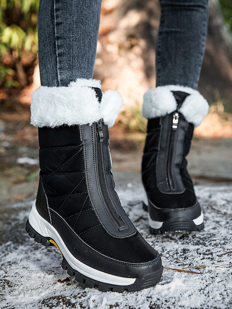 Women'S Outdoor Hiking Boots, Warm Lined Zipper Snow Boots