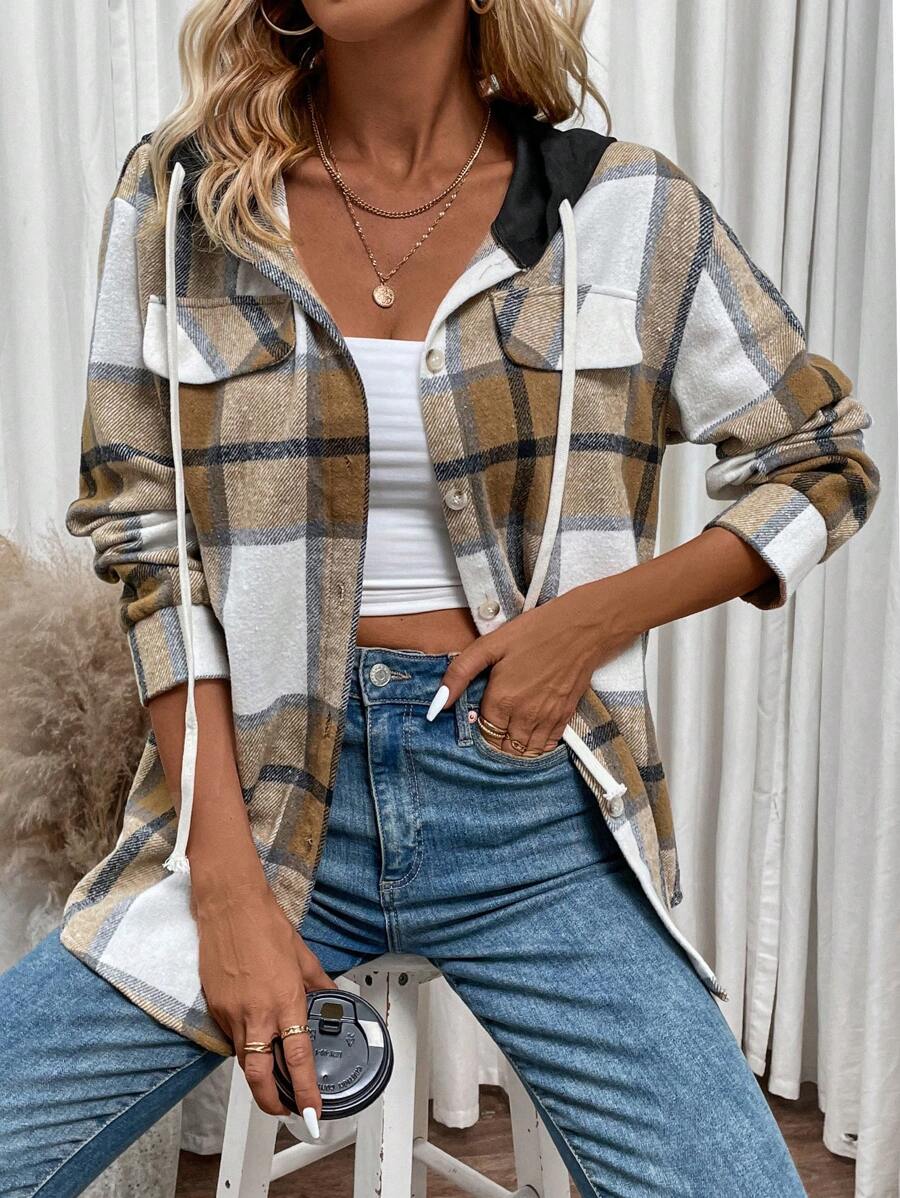 SHEIN LUNE Women'S Plaid Hooded Casual Jacket