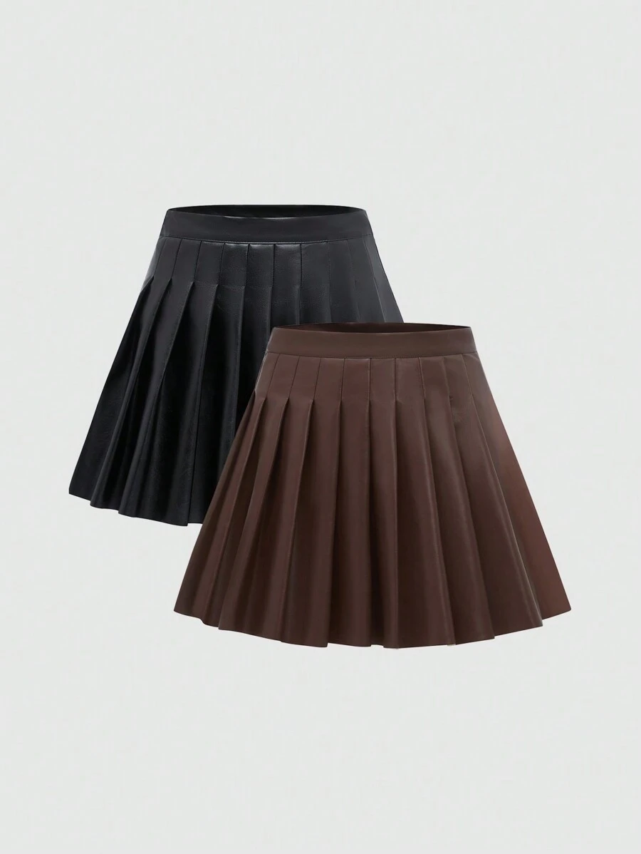 SHEIN Qutie Women'S Pleated Faux Leather Skirt