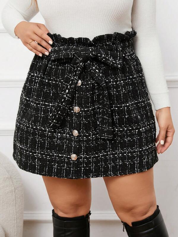 SHEIN Frenchy Women'S Plus Size Button Detail Paperbag Waist Skirt