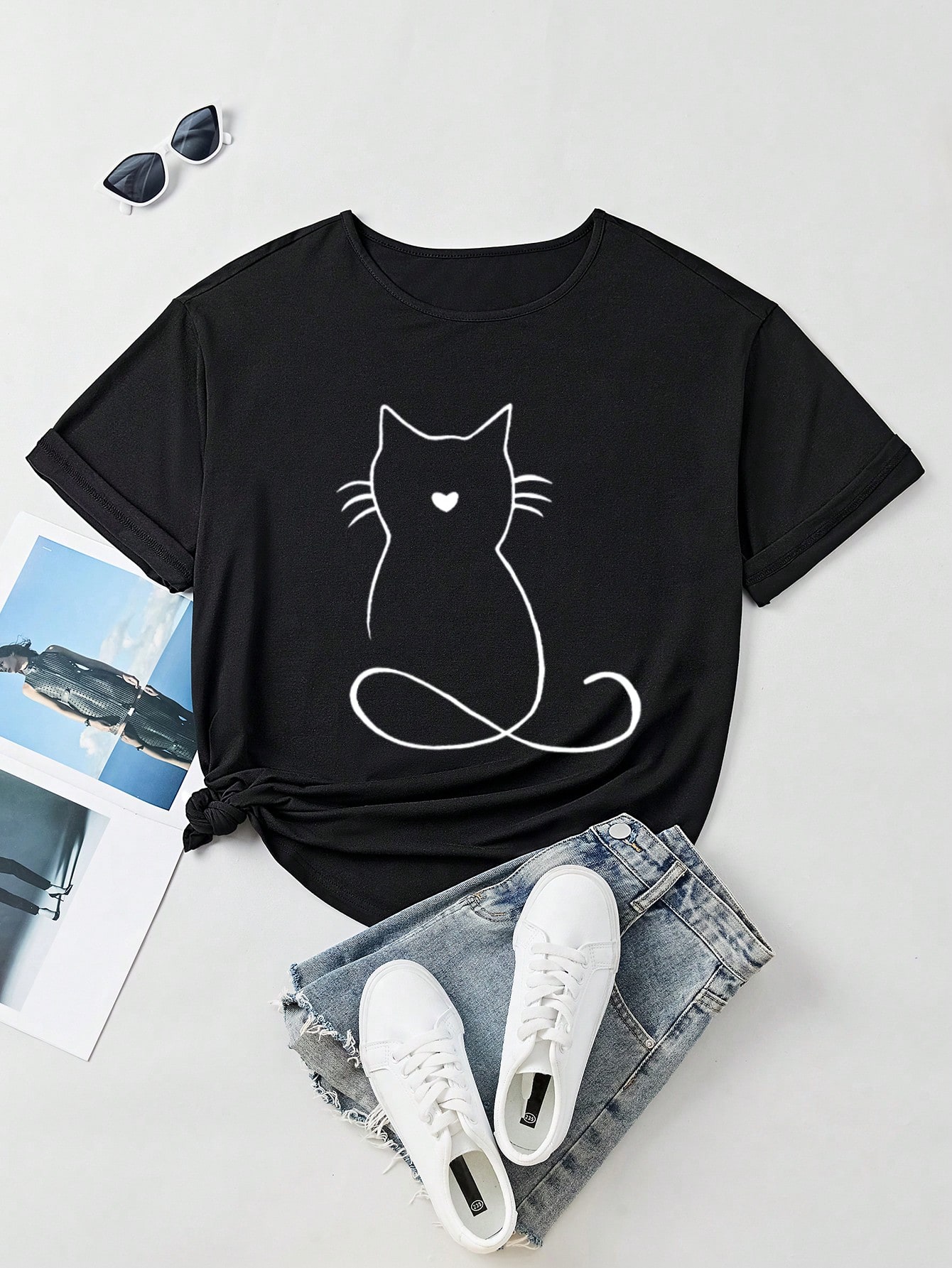 Women'S Plus Size Cat Print Short Sleeve T-Shirt