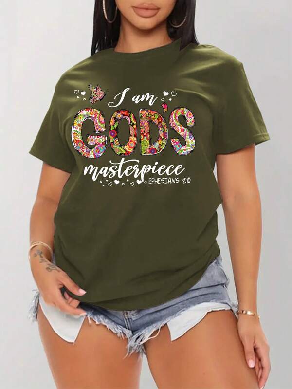 Women'S Plus Size English Letter Print Short Sleeve T-Shirt