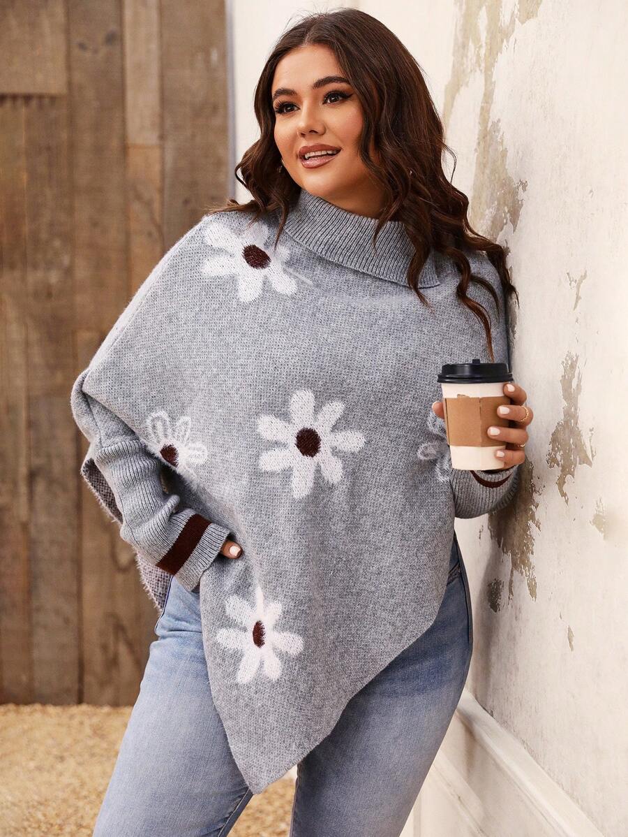 SHEIN Essnce Women's Plus Size Floral Turtleneck Sweater