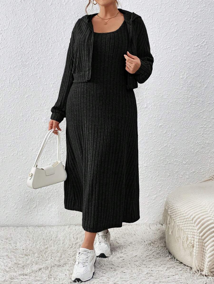 SHEIN Essnce Women'S Plus Size Solid Color Hollow-Out Casual Suit