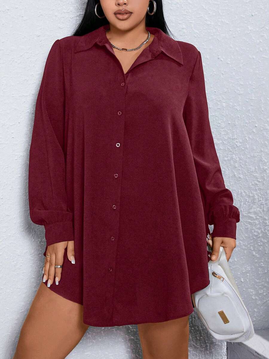 SHEIN Coolane Women'S Plus Size Solid Color Lantern Sleeve Shirt Dress