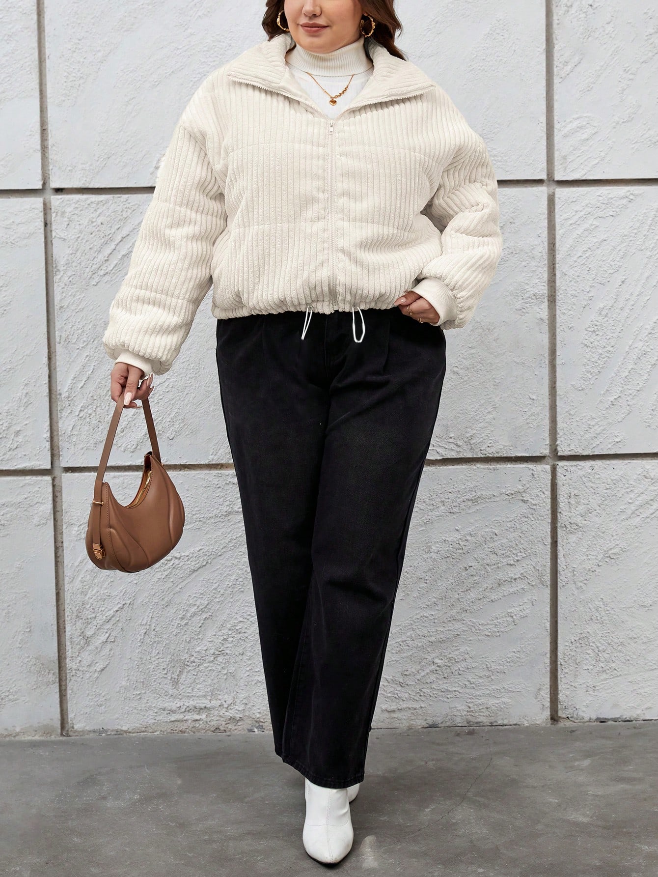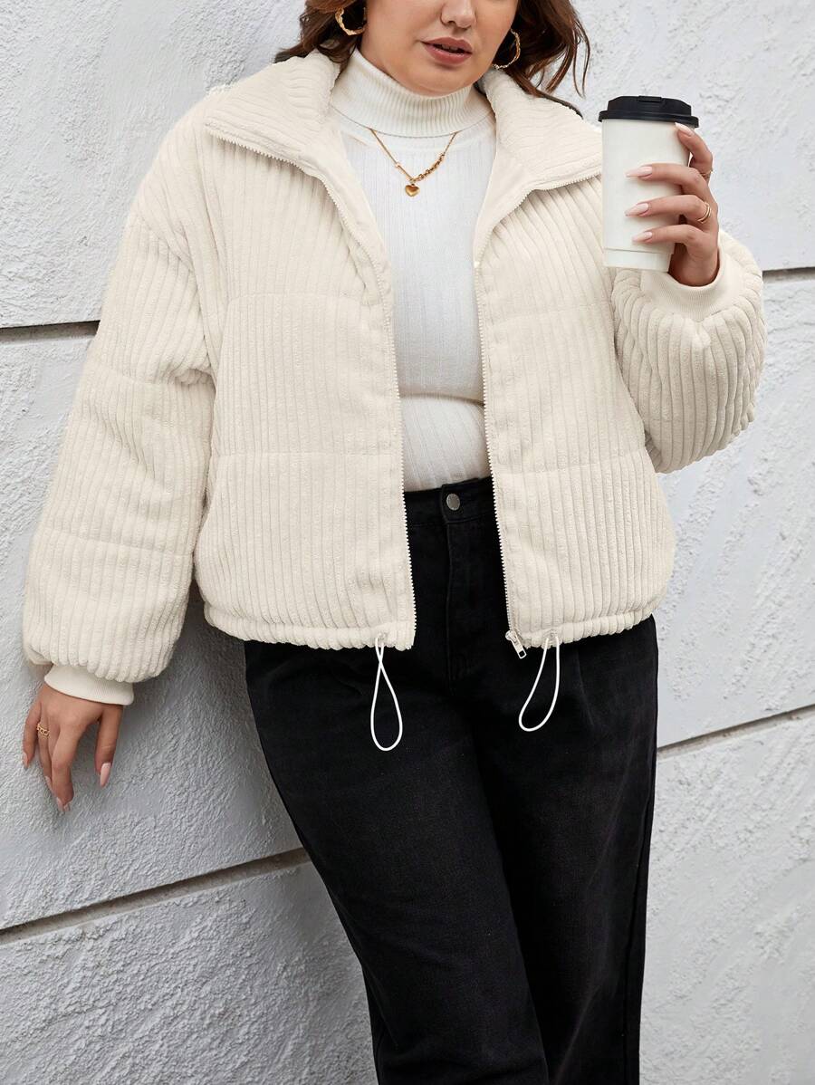 SHEIN Essnce Women'S Plus Size White Warm Winter Down Jacket With Practical Pocket Design