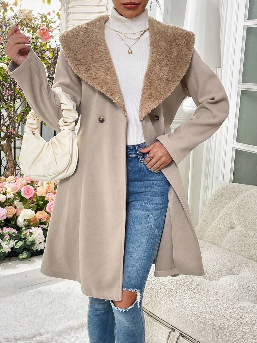 SHEIN Frenchy Women'S Plush Lapel Collar Long Sleeve Woolen Jacket