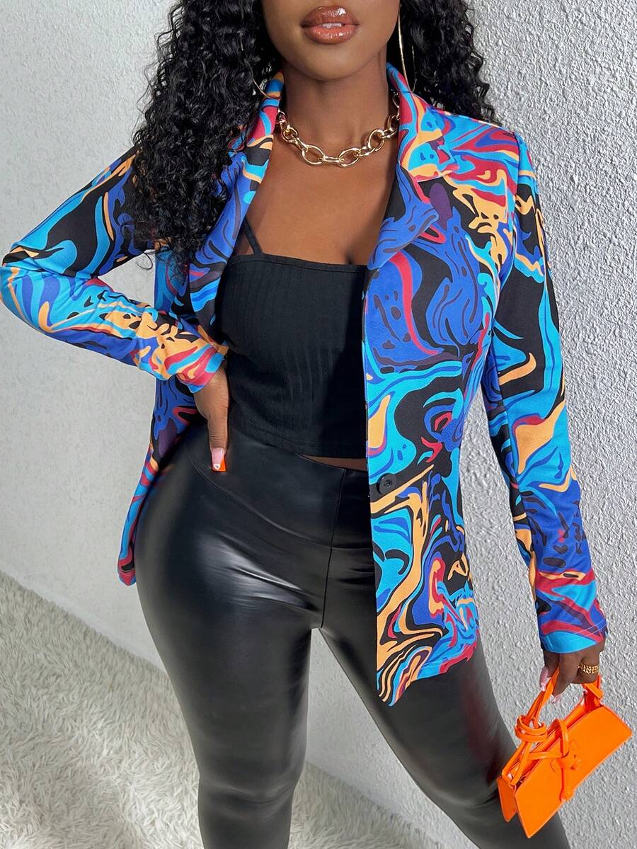 SHEIN Slayr Women'S Printed Fluid Blazer With Single Button Closure