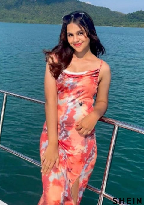 SHEIN Privé Women'S Printed Spaghetti Strap Split Dress