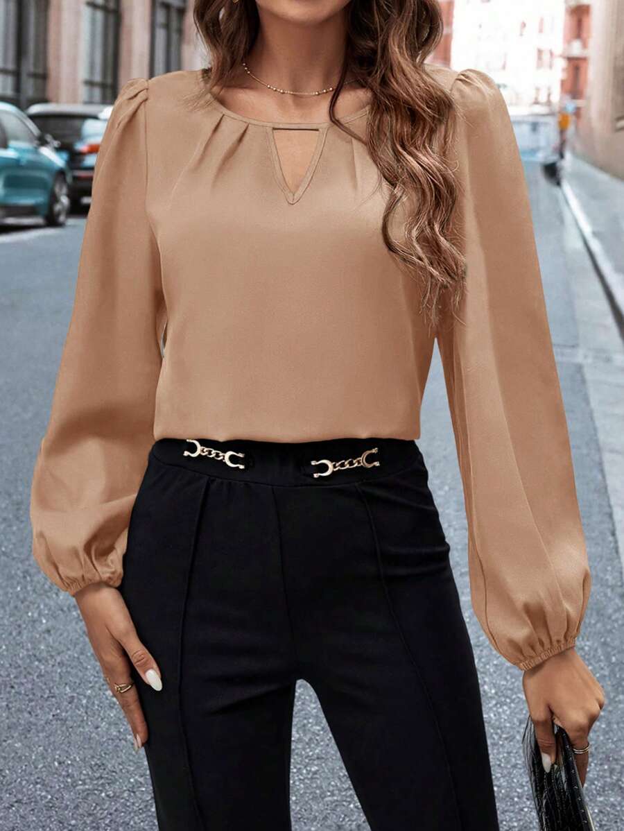 SHEIN Clasi Women'S Puff Sleeve Pleated Neckline Shirt