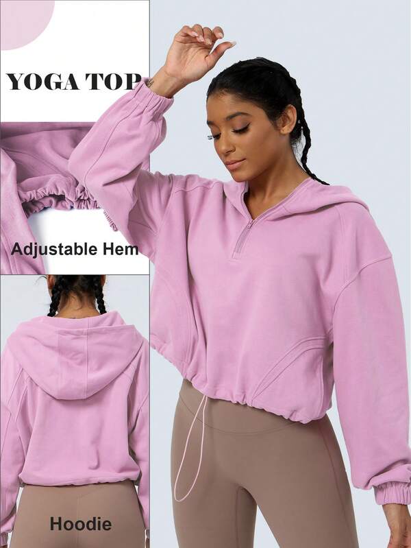 Women'S Pullover Hooded Yoga Fitness Outdoor Running Zipper Loose Long-Sleeved Sports Sweatshirt
