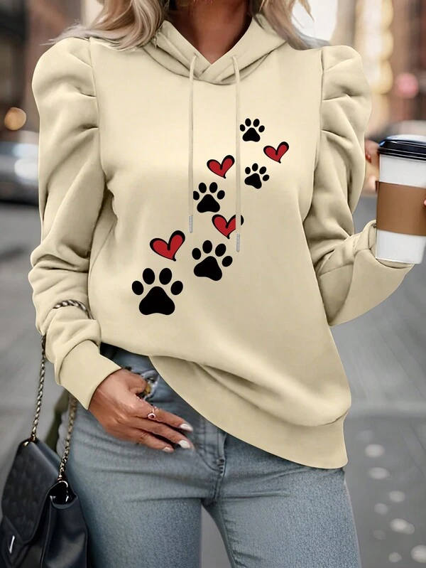 SHEIN LUNE Women'S Pullover Hoodie With Claw Print And Heart Pattern