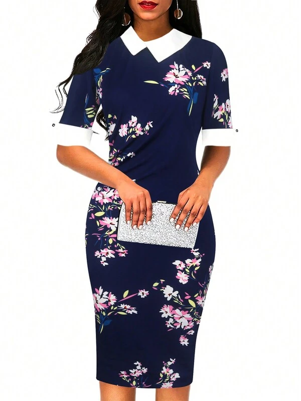 Women'S Retro Bodycon Knee-Length Formal Office Dresses Work Pencil Dress