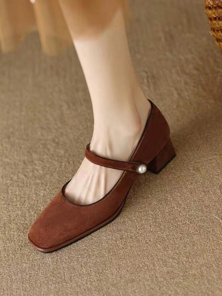 Women's Retro Square Toe Mary Jane Shoes With Buckle Strap, French Professional Chunky Heels High Heel Pumps