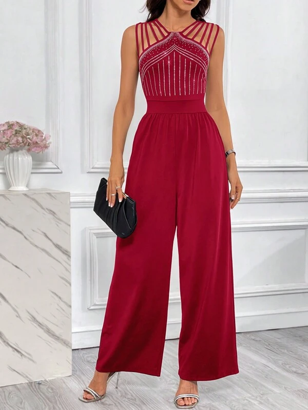 SHEIN Privé Women'S Rhinestone Decor Hollow Out Jumpsuit