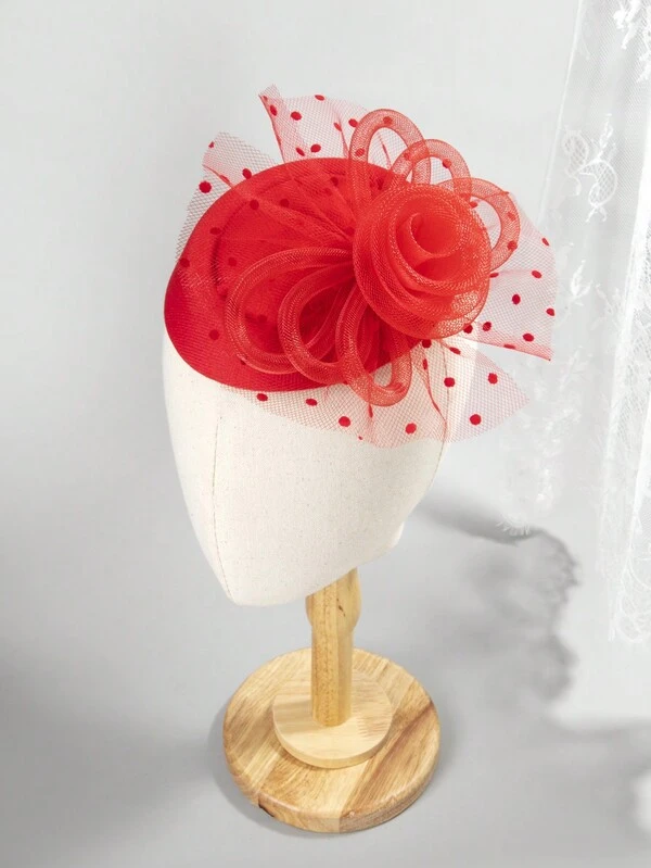 Women'S Rose Flower Ballet Style Lace Mesh Bow Knot Fascinator Hair Clip