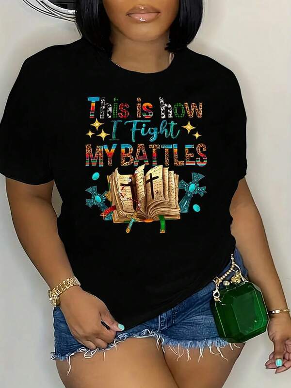 SHEIN LUNE Women'S Round Neck T-Shirt With Slogan And Book Print